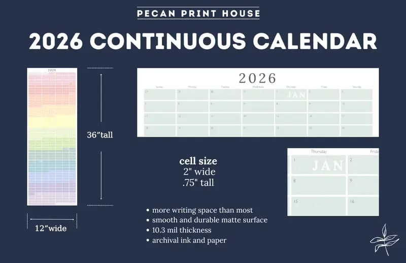 โจ Stay organized, stylish, and inspired all year long with this full-year pecan print wall calendar!