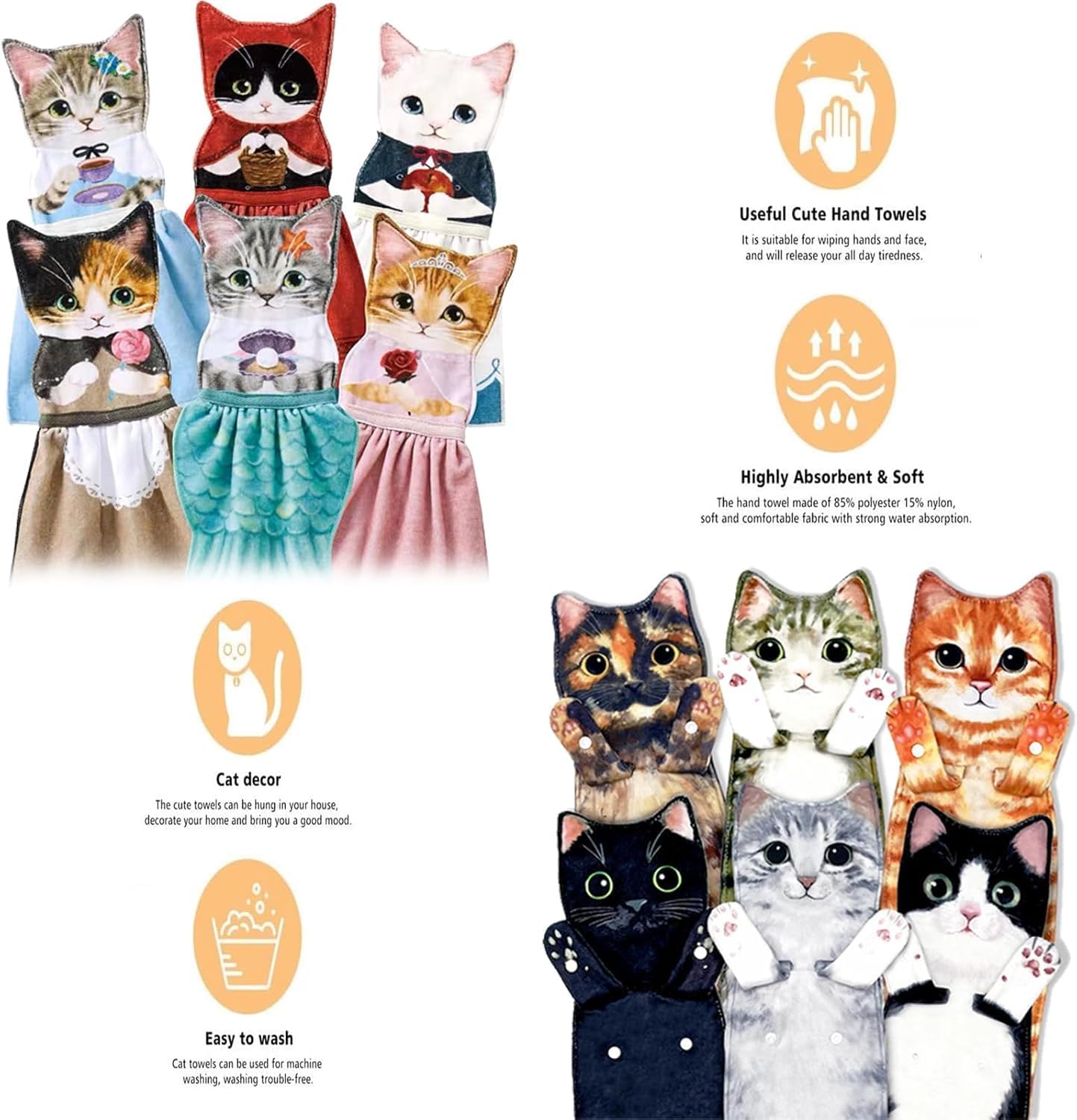 Each towel features a lifelike cat print with tiny paws and a sweet face that melts your heart.